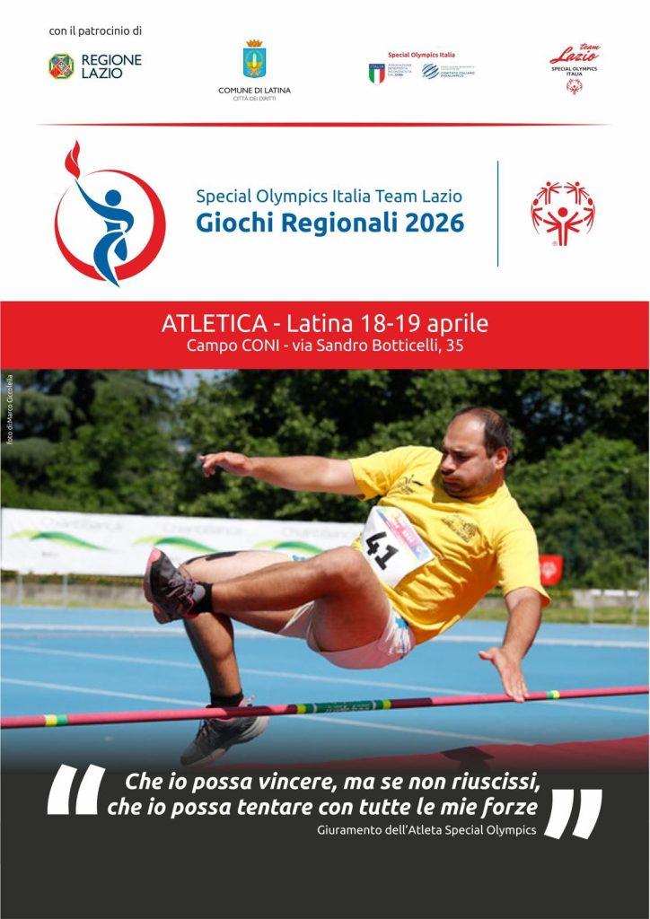 Il Campo Coni di Latina torna a ospitare un grande evento regionale di Special Olympics. Saranno circa 200 gli atleti in rappresentanza di 14 team provenienti da tutto il Lazio (con l’aggiunta di un team abruzzese) a darsi appuntamento nel capoluogo pontino sabato 18 e domenica 19 aprile, per un fine settimana di gare che rappresenta una fondamentale tappa preparatoria per i prossimi Giochi Nazionali estivi, di Lignano Sabbiadoro (19- 24 maggio).